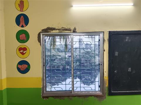 2 nos class room windows were replaced with aluminium frame and cle. . .
